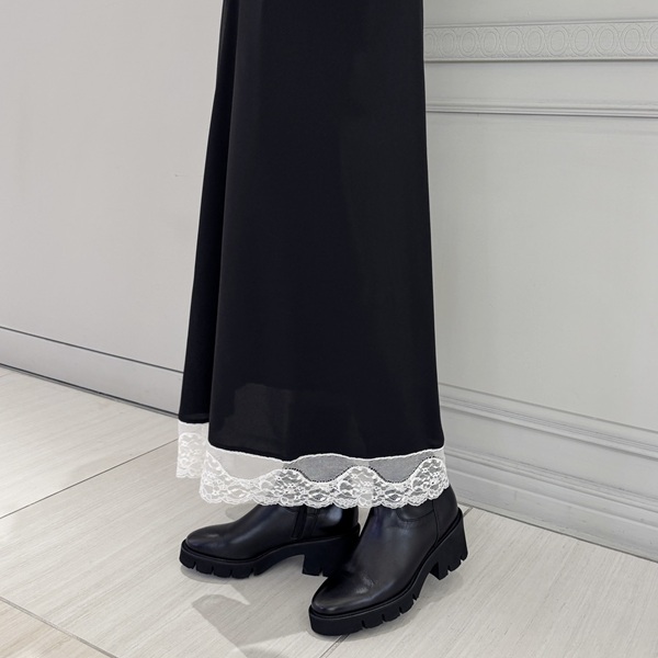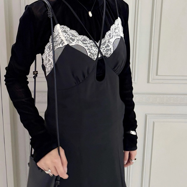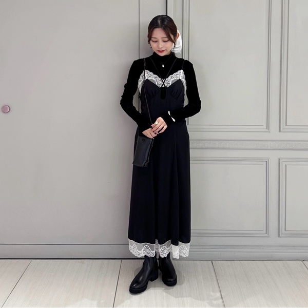胸元と裾の大胆なレースが魅力的なキャミソールワンピースです。