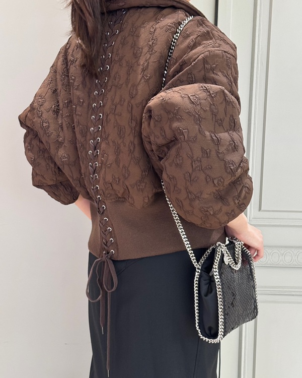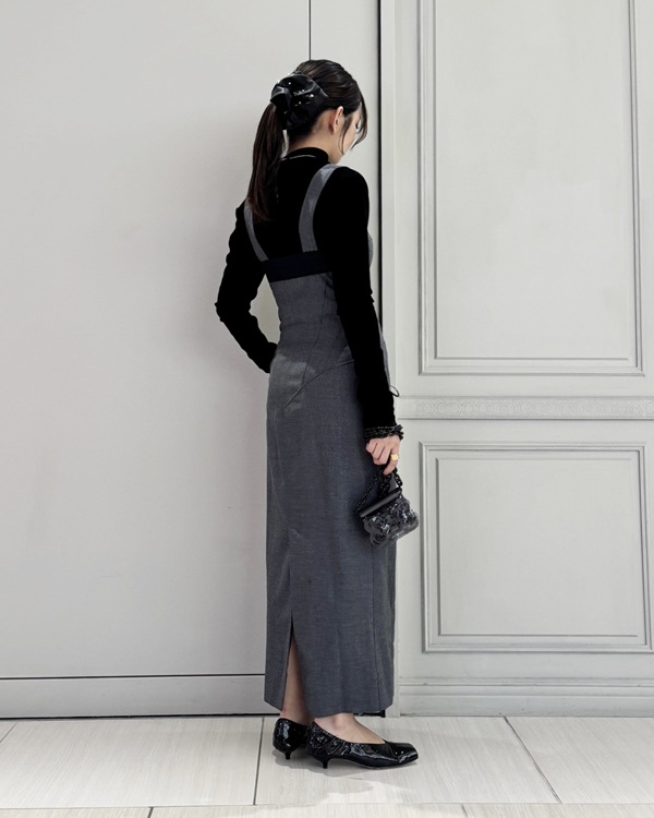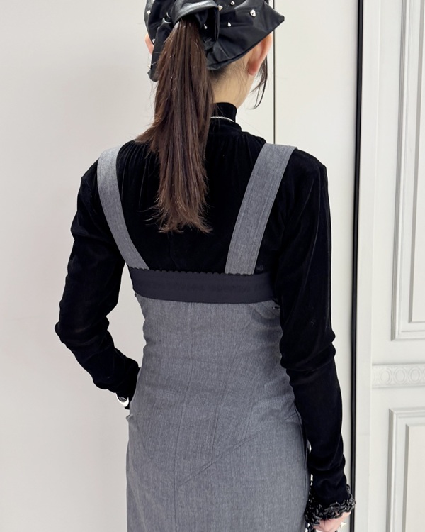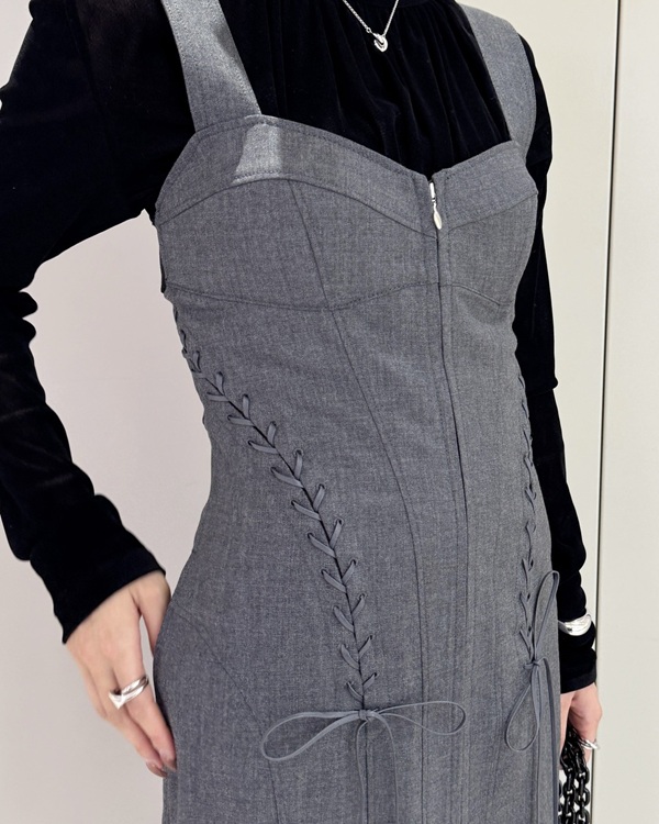 コルセットから着想を得たデザインで、胸元やウエスト、腰のラインを美しく見せてくれる唯一無二のアイテムです。
