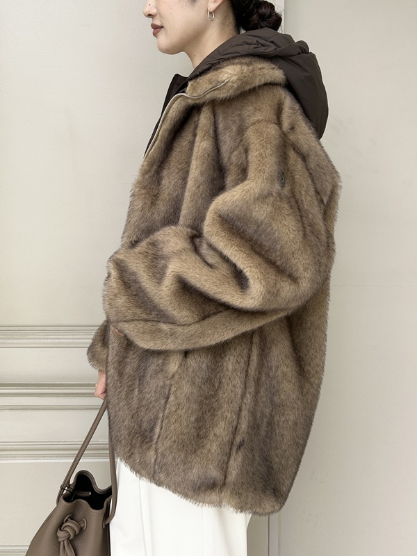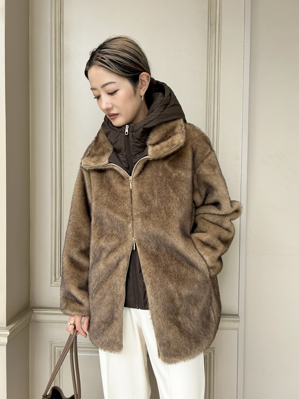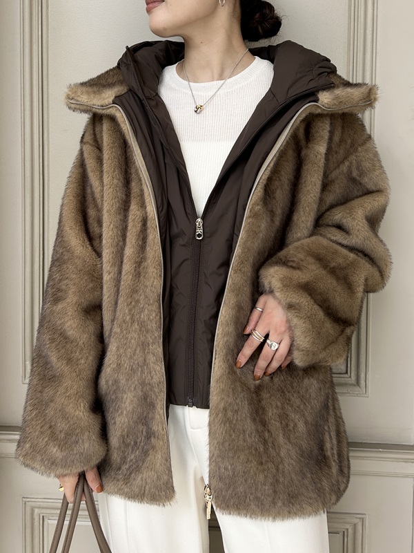 艶を抑えた上品な質感のダウンのフード付きライナーに、ふわっと柔らかなファーが絶妙にマッチ!見た目はリッチなのに、程よく抜け感のあるシルエットと軽い着心地でデイリーに使いやすいデザインです。防風性にも配慮された仕様で、冬のデイリーアウターとして頼れる存在。ダブルジップ仕様で着こなしの幅も広がり、1枚で遊べる万能アウターです。