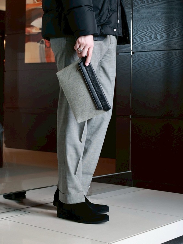 ボリュームを抑えたシルエットと上品な光沢感は、スーツやジャケパンにも自然に馴染みます。