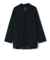 ハリのあるポプリン(経糸の密度が緯糸より多く、横方向に細いうねが見える平織物の生地)を使用したシャツで、前から見るとシンプルですが、後ろを見るとサテンの生地が!