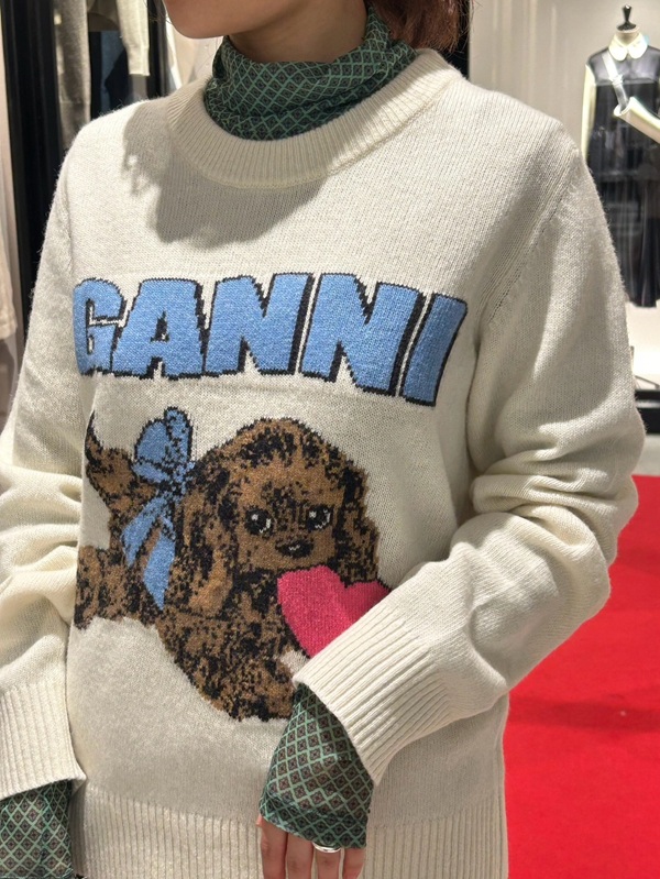 フロントの“Puppy”グラフィックが目を惹く、GANNIらしい遊び心ある一枚。