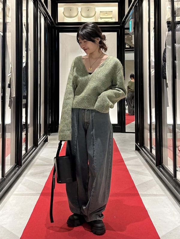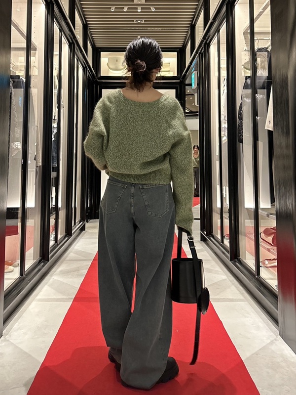 ルーズなワイドデニムと合わせて、抜け感のあるリラックススタイルに。