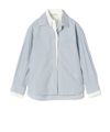 レイヤード風のデザインが印象的なシャツは、一枚で存在感のある仕上がり。