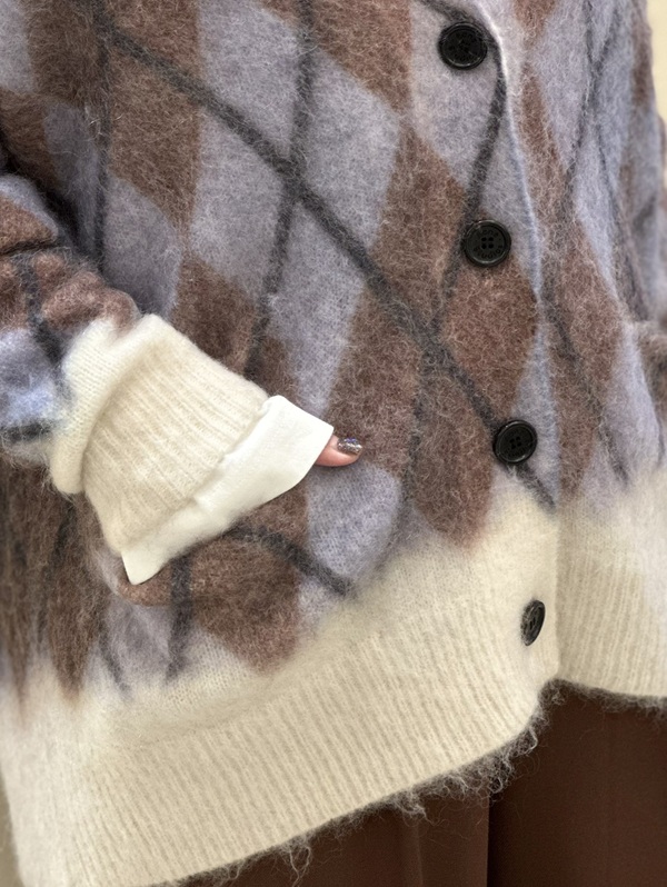 まずご紹介するのは今季注目のおすすめアイテムモヘアカーディガン
