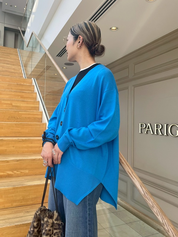 横から見るとスリットが大きく開いたAラインで、カーディガンだけどデザインニットのような顔をしています♡