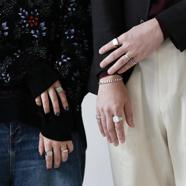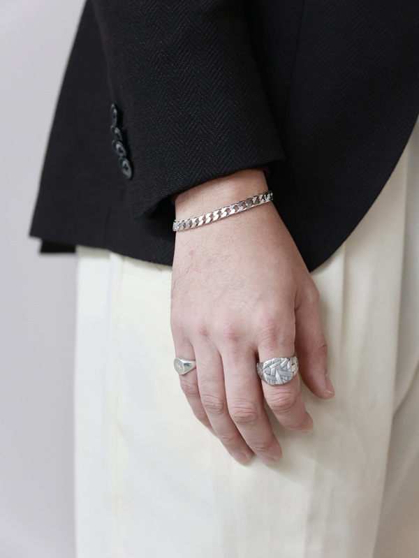 シルバーの美しい輝きは、カットソーやシャツ、ニットなど、どんな装いにもすっと馴染みます。重ね付けにも相性が良く、男女問わず人気の高いアイテムです。