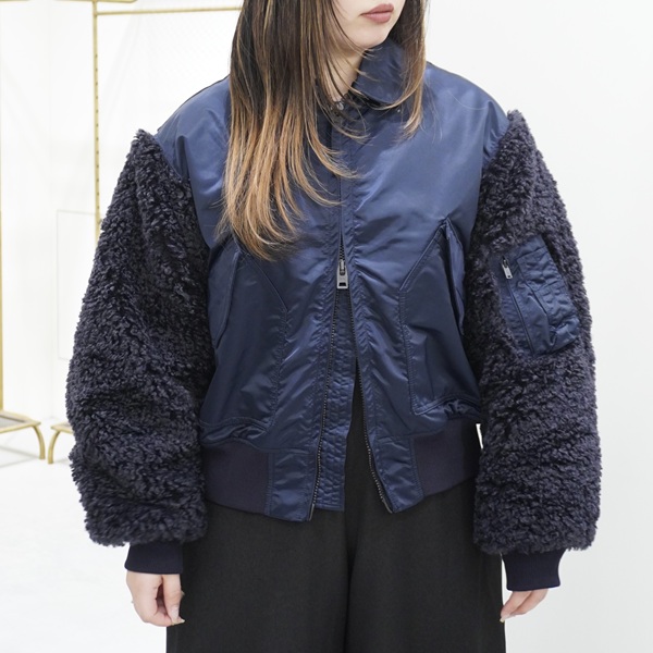 HYKE定番のボアジャケットをベースに、袖テデザインがアップデートされた1着。
