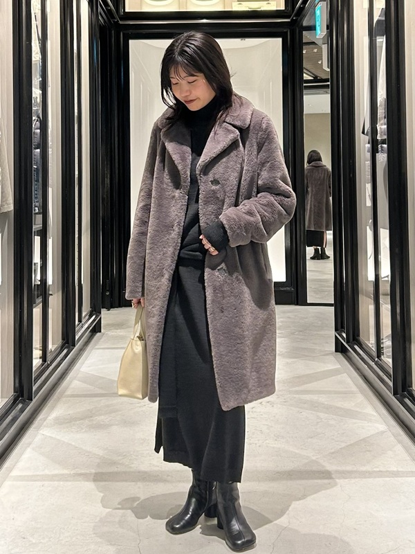 本日は、そんな特別なシーズンにぴったりなスタイリングに華やかさをプラスしてくれるファーアウターを使用したコーディネートをご紹介いたします。