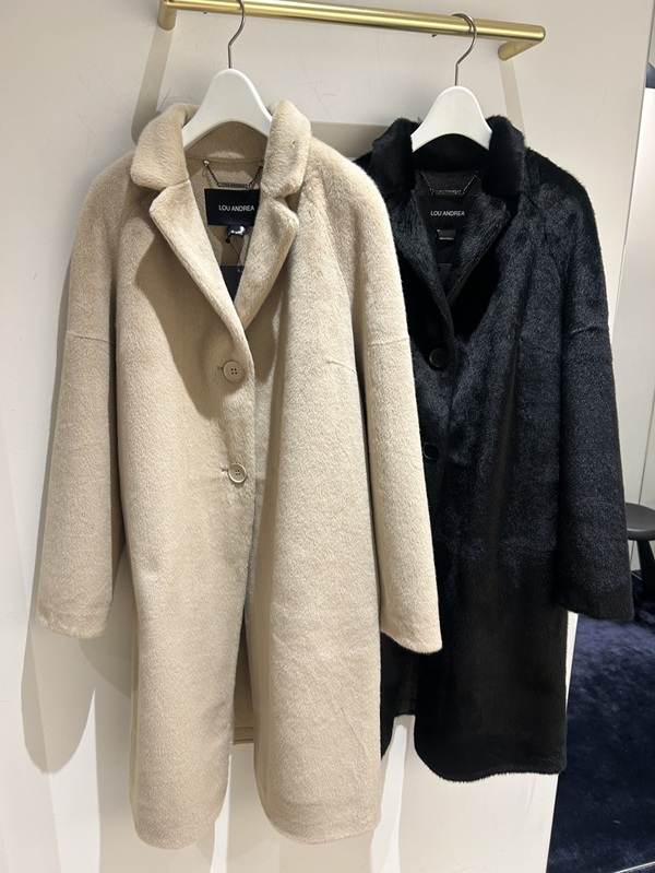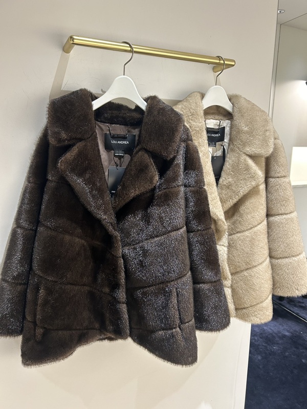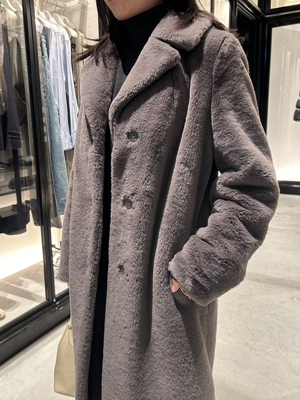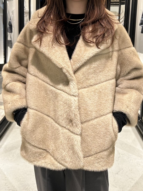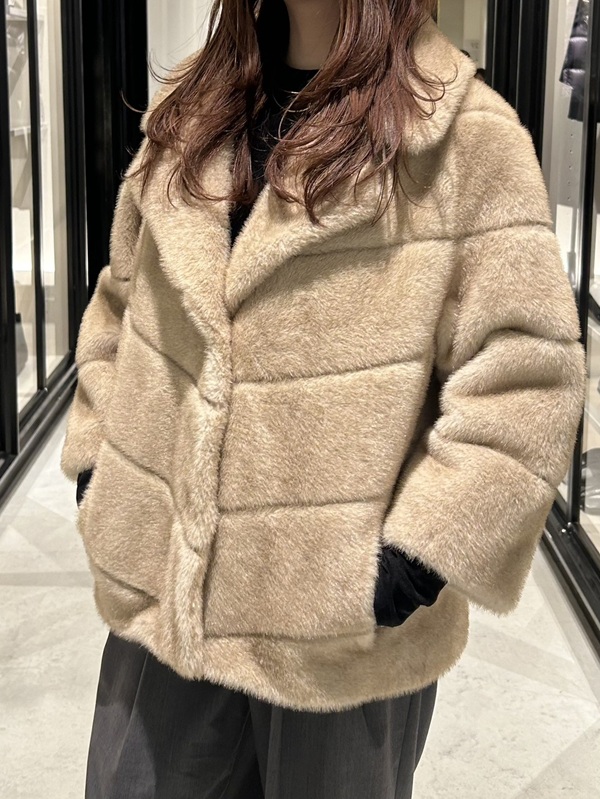 店頭にはファーアウターを豊富に取り揃えており、シルエットや素材感の違いを実際に見比べていただけます。