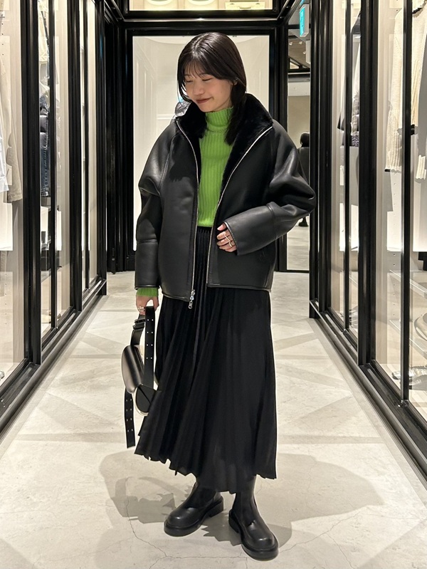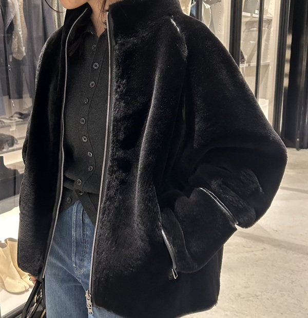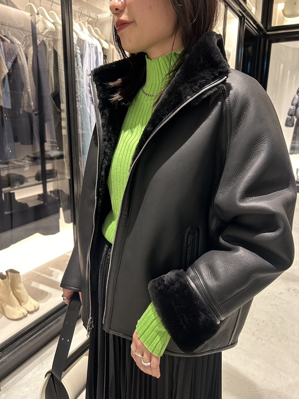 レザーの持つハードさはありつつも、ラムレザーならではのしなやかさとボアの組み合わせにより、柔らかさのある女性らしい雰囲気で着こなしていただけます。