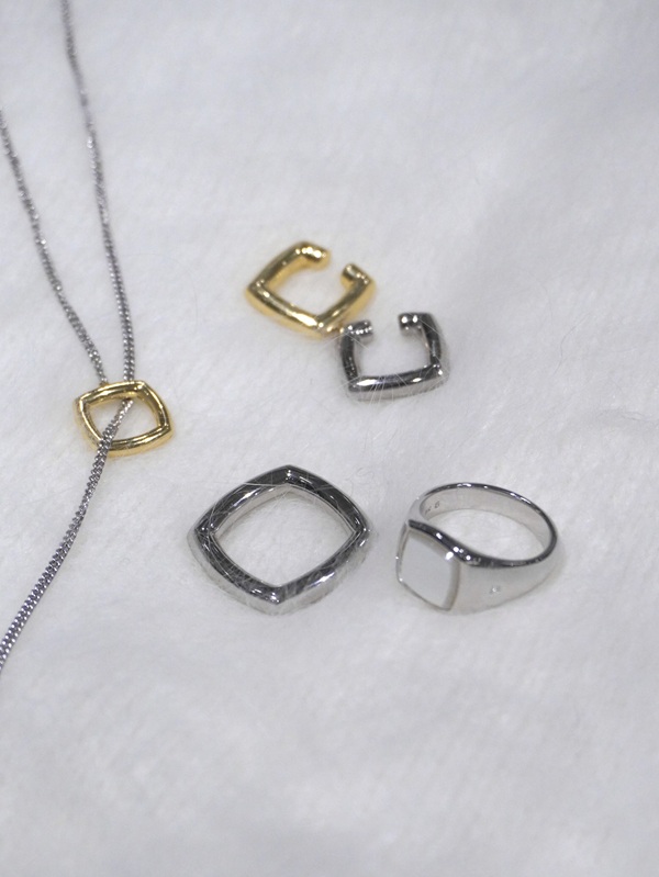 「TOM WOOD(トムウッド)」のFrameシリーズ。ありそうでなかったスクエア型が新鮮です。アイコニックなクッションリングを模ったような形で、定番アイテムを新しい解釈で落とし込んでいます。