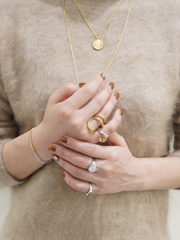 ゴールドとシルバーをミックスするのも抜け感が出ておすすめです。