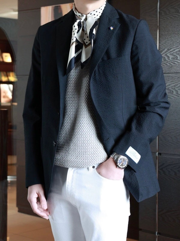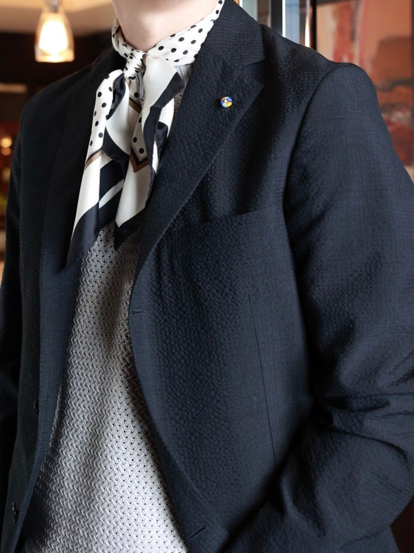 時期は少し早いですが、ブラックのシアサッカー生地も入ってきており、正に「LIGHTWEIGHT (ライトウェイト)」の特性が活かされたオススメのジャケットです。