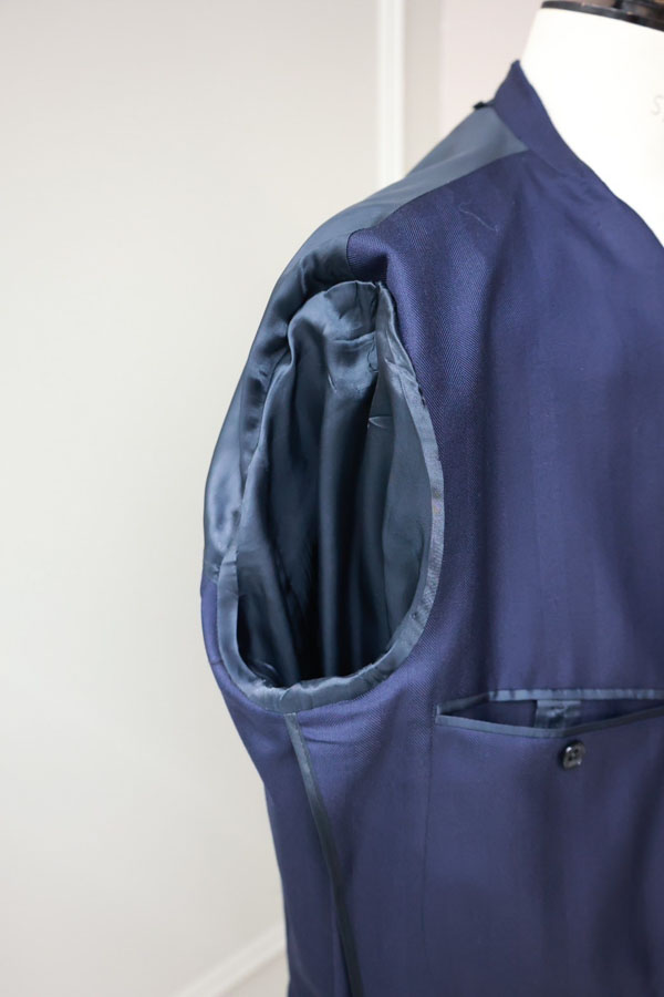 いわゆる、いせこみの分量を分かりやすく多くしているより、アームホールのかまを大きくとっている印象です。