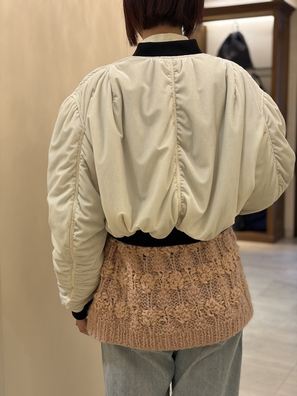 コンパクトな着丈でバランスが取りやすく、バックシルエットのふんわりとしたボリューム感が唯一無二の存在感を放ちます。