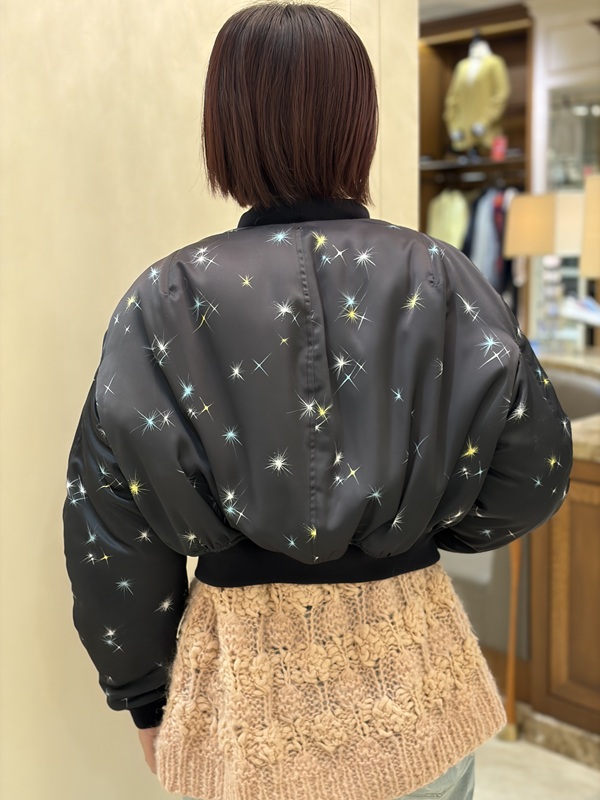 リバーシブル仕様で、ブランドの2025AWシーズンを象徴する3色の光のあるプリント柄は、誰とも被らない存在感があります。