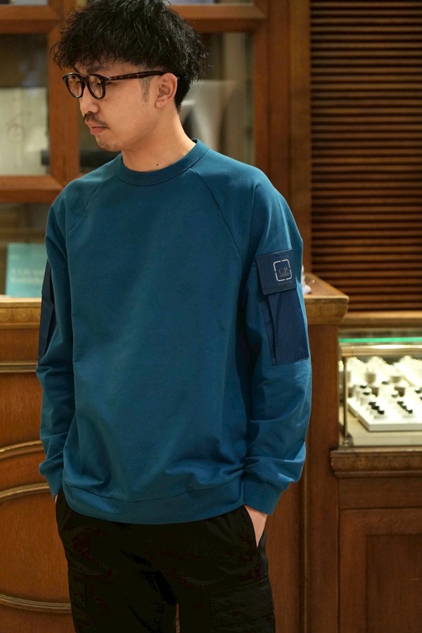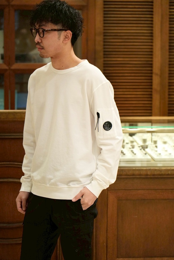 まずご紹介したいのが、CP COMPANYを象徴するディテールであるゴーグルレンズを袖に配したスウェット。