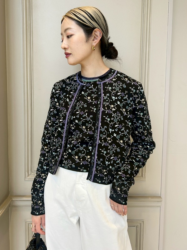 【Mame Kurogouchi(マメ クロゴウチ)】 Floral Motif Glitter Knit Cardigan