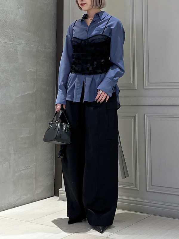 チュールのビスチェとスラックスをドッキングしたサロペット。