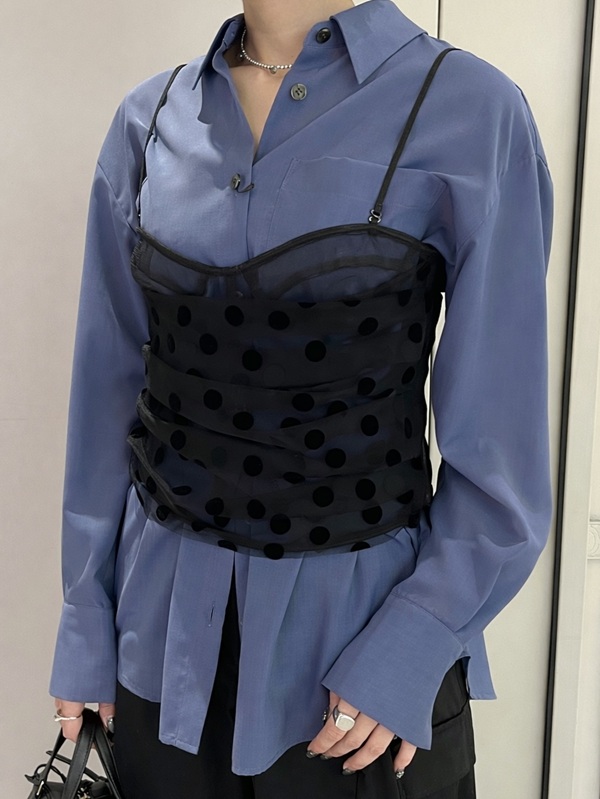 甘い印象になりがちなドット柄ですが、シアー素材が色気を足してくれて、柄アイテム特有の重さや合わせにくさが無く挑戦しやすいアイテムです!