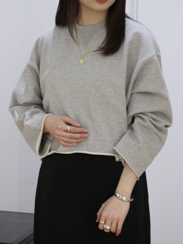 スウェットはカジュアルになりがちなアイテムですが、程よい丈感とすっきりしたシルエットなので、カジュアルになりすぎず大人っぽく着られる一枚です◎
