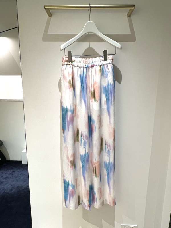 キュプラ素材ならではのなめらかな肌触りが魅力のストレートパンツ。