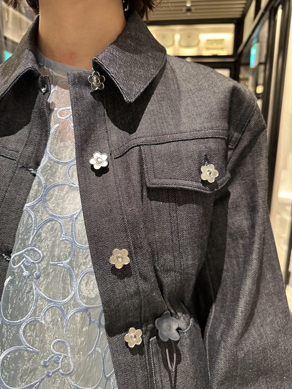 ブラウスとデニムジャケットのボタンには、
