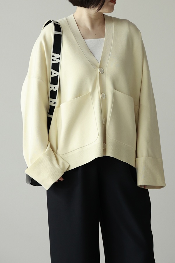 それだけで全体の印象が整うニットカーディガンです。