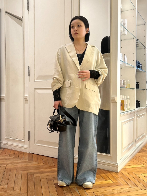 すっきりとしたフォルムがワイドデニムとも好相性で、重たくならずバランス良くまとまります。