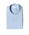 今回のコーディネートでは、ブルーシャツにストライプタイを合わせた王道の組み合わせ。
