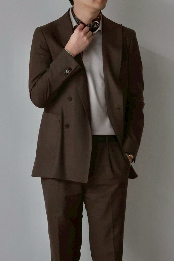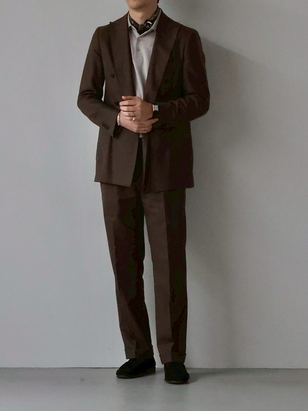 ネイビーとはまた違った魅力を持つのがブラウンスーツ。