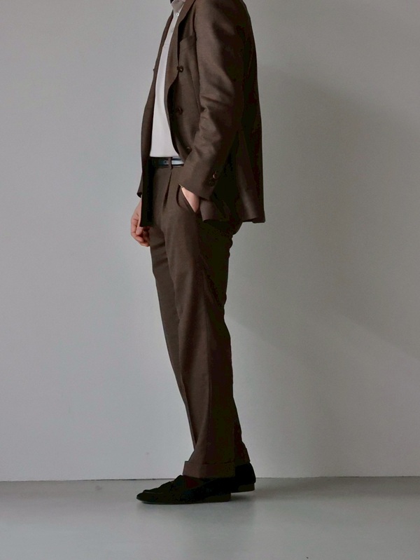 |ブラウンスーツで柔らかい大人の雰囲気に