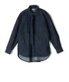 フロントには大きめのフラップポケットを配置。ワークテイストの力強さを感じさせるディテールを取り入れながらも、全体のバランスはあくまで上品に整えられており、無骨さとエレガントさが共存する大人のためのデニムシャツとなっています。