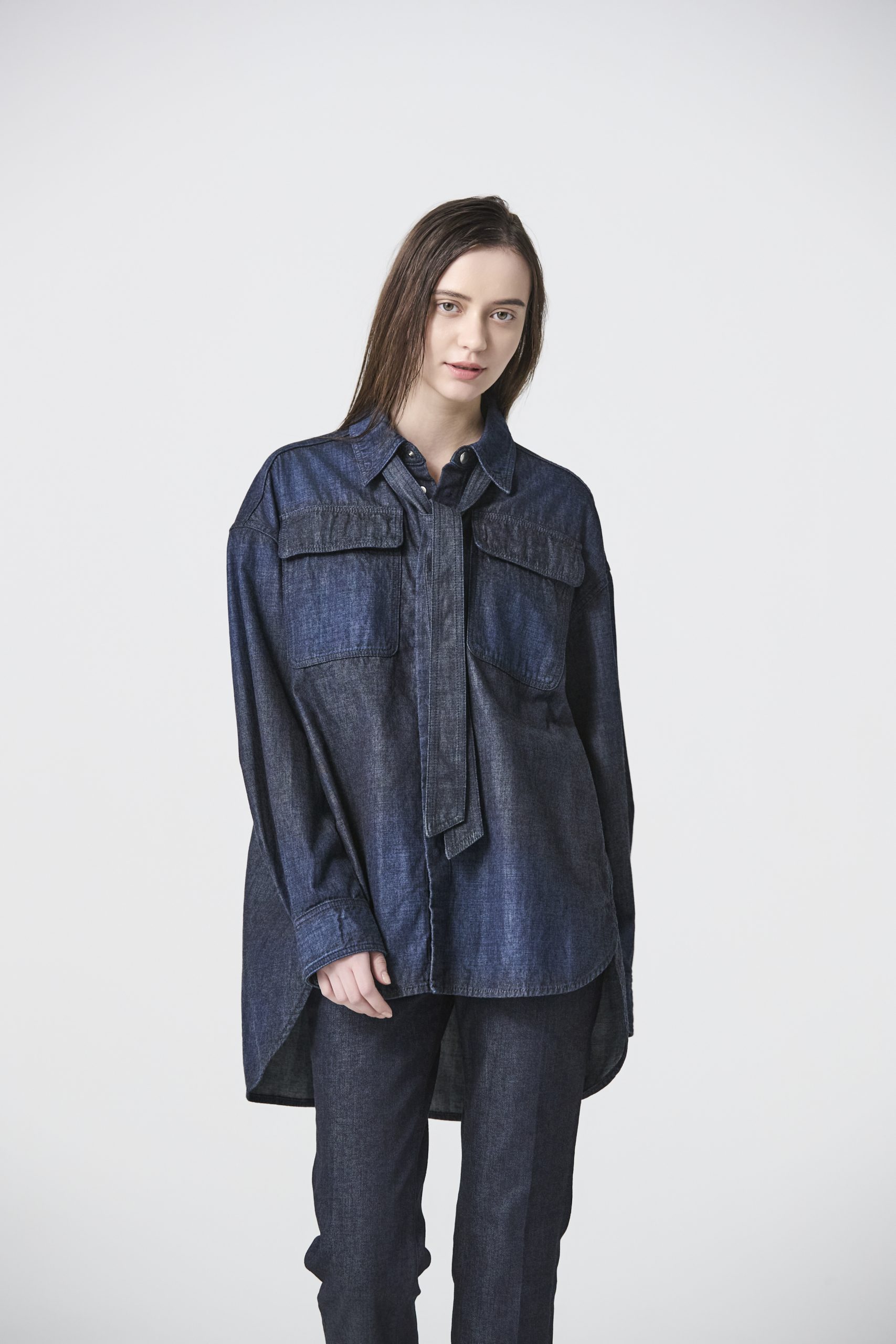 こちらのシャツも、サイズ感やポケットにマスキュリン要素を含みつつ、丸みを帯びたフォルムやカッティングにはフェミニンを感じる、絶妙なバランスにnear.nippon(ニアニッポン)らしさが詰まっています。