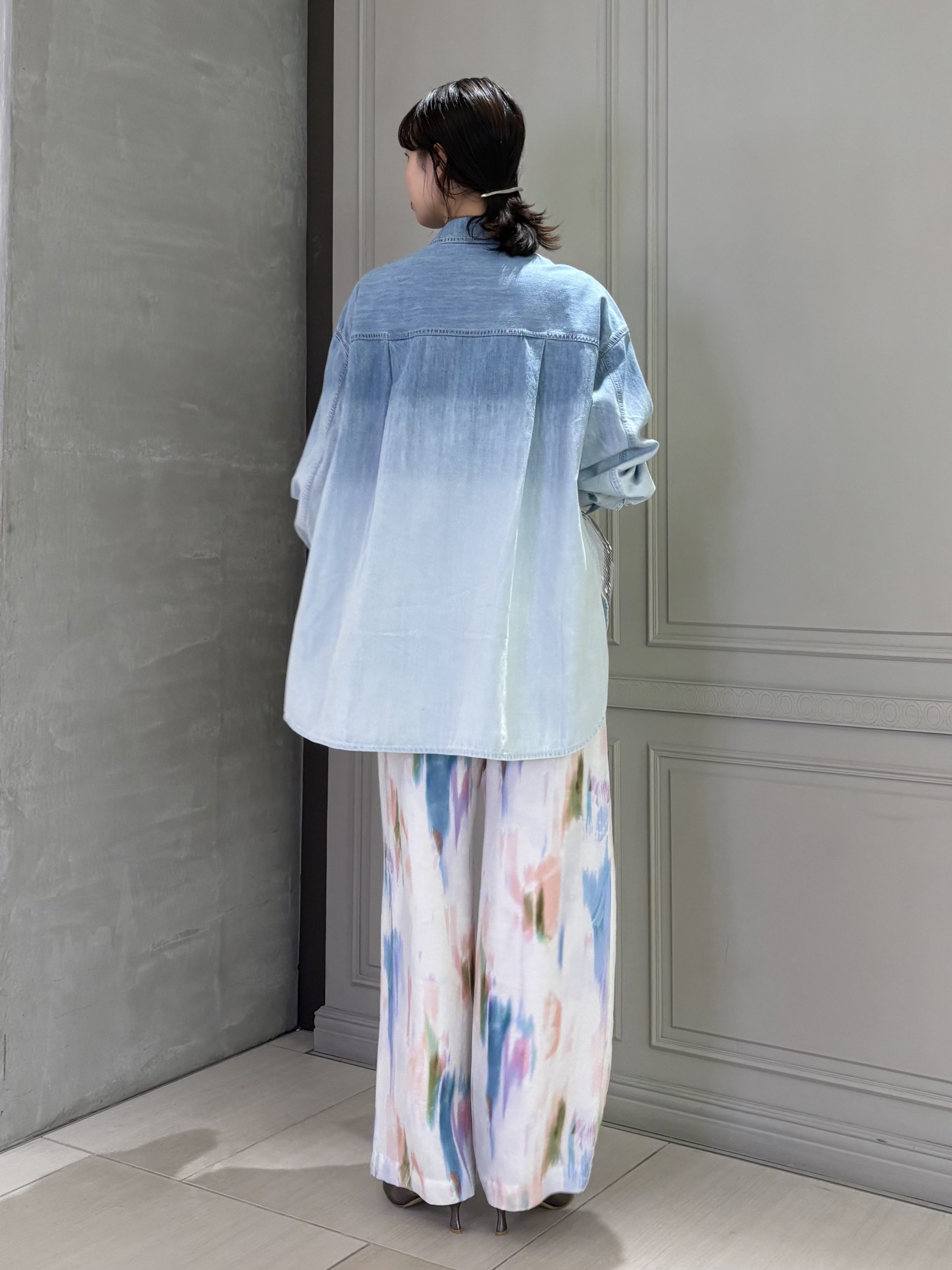 パンツは白を基調とした柄なので、シャツのグラデーションとも自然に馴染みます◎