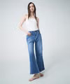デニムのフレアシルエットが縦のラインを強調し、スタイルアップも叶えてくれます。
