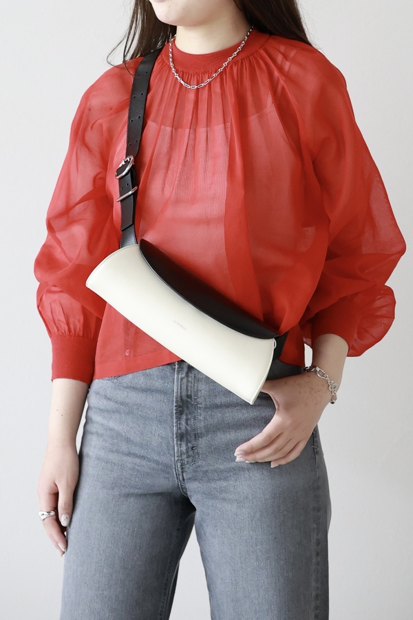 コンパクトなトップスと立体感のあるバルーンスリーブのコントラストが、自然なメリハリを生み出します。