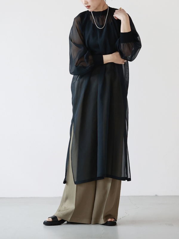 特に袖のシアーが、抜け感をつくりながらも上品な印象をキープしてくれます。
