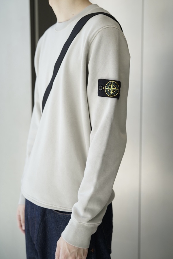 さらに、このモデルを象徴するのが“ガーメントダイ(製品染め)”の技術です。完成した状態のスウェットを染色することで、色に独特の深みやムラ感が生まれ、一点ごとに微妙に異なる表情を持ちます。ストーンアイランドは専用の染色研究チームを持つほどこの分野に強みがあり、その技術力がダイレクトに反映されています。