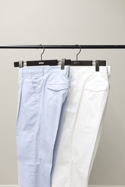 PT torinoのパンツは、センタークリースが美しく保たれることで縦のラインを強調し、全体を引き締めて見せます。