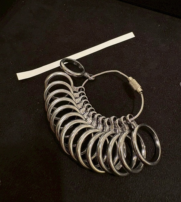1つはリングゲージを活用する方法、もう一つは紙を使って指の太さをはかる方法です。