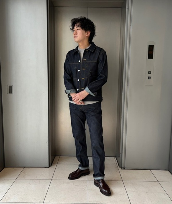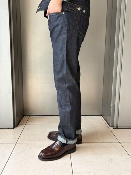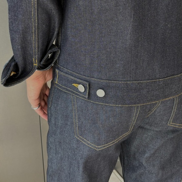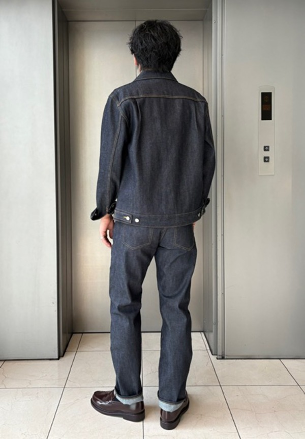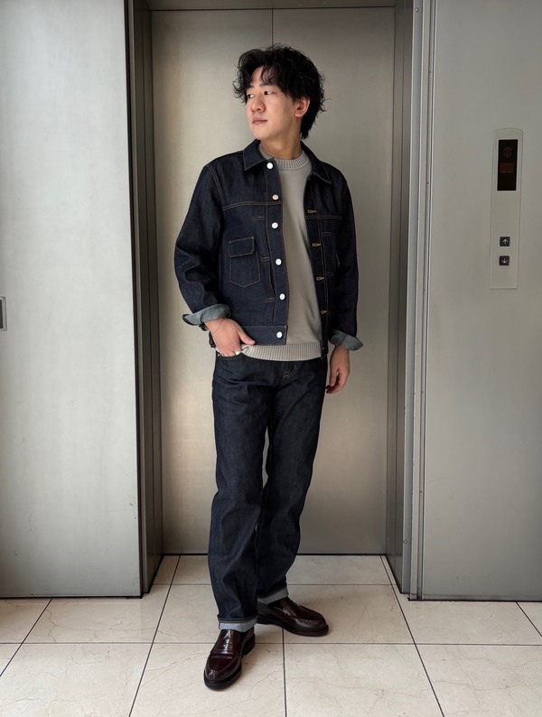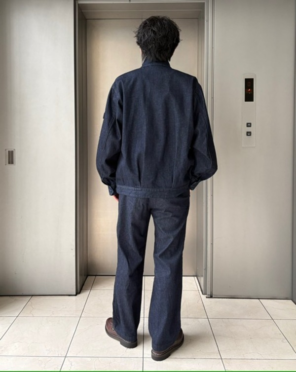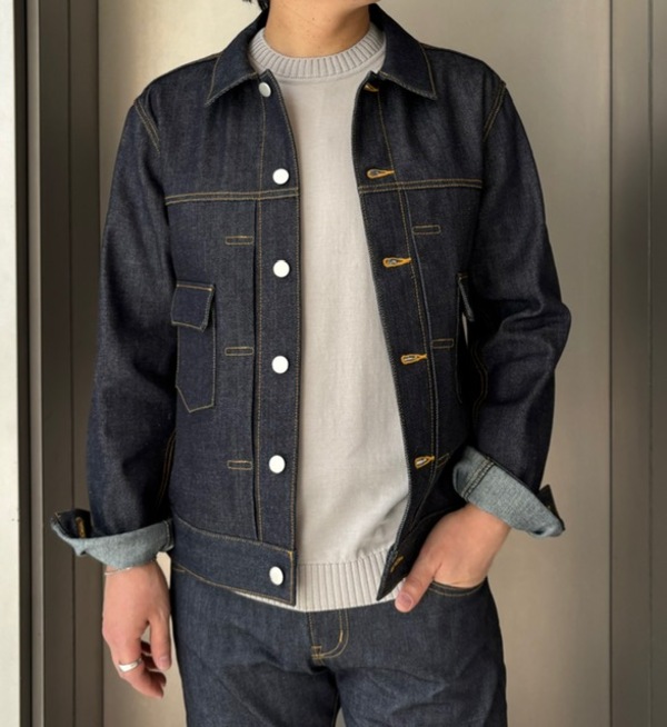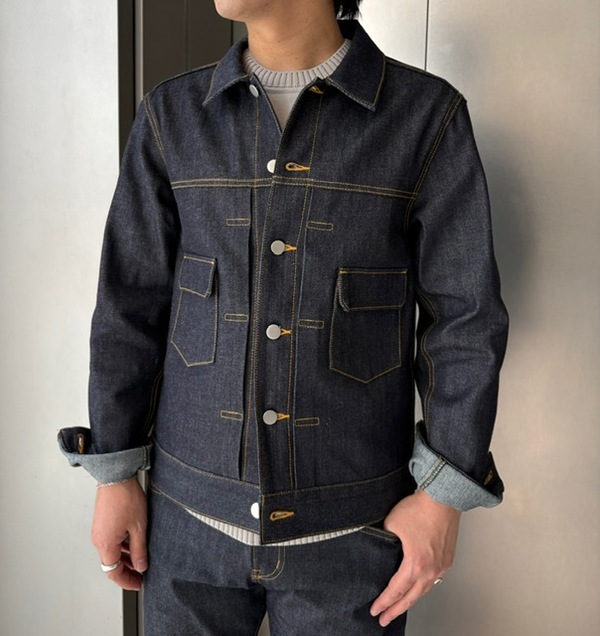 普通のGジャンに比べるとノンウォッシュですが硬すぎず、オンスもやや薄く作っている為着やすくなっております。