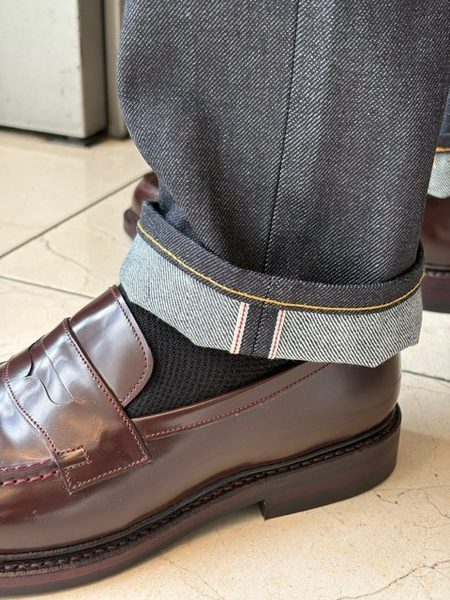 今回はストレートのセットアップで着用しましたが、今っぽく着られるセミワイドの型のパンツもご用意がございます。