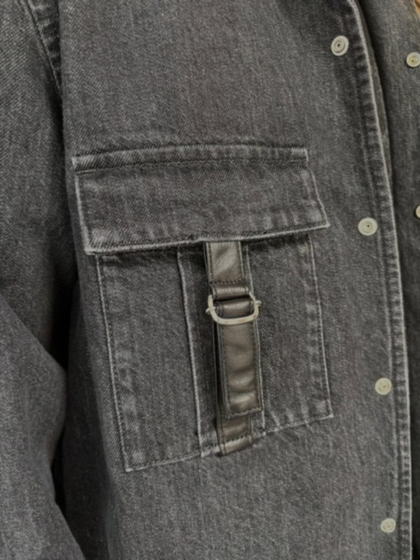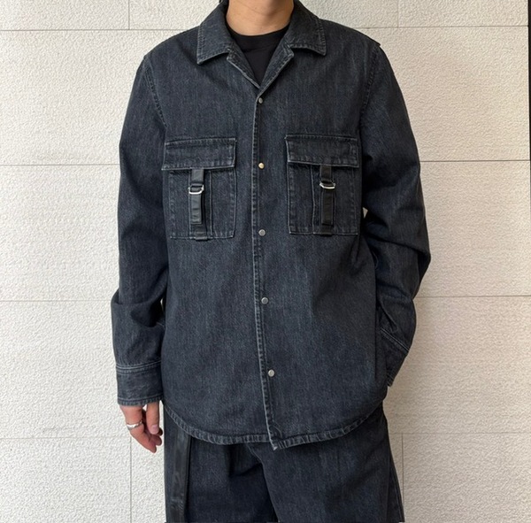 シャツ型のジャケットとレザーの組み合わせが従来のデニムジャケットにはない組み合わせ。