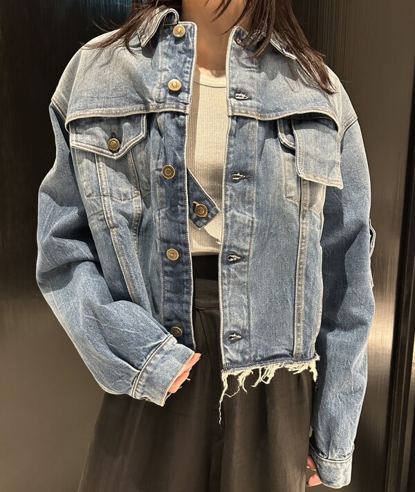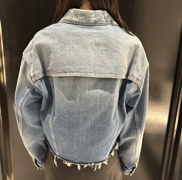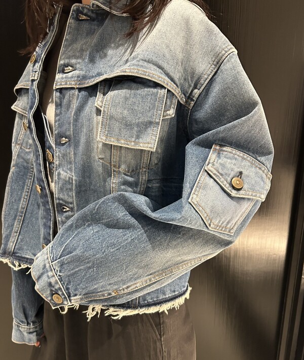 切りっぱなしの裾が特徴のデニムジャケット。