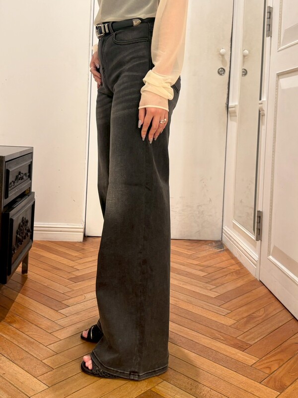 センタープレスが入っていて綺麗めな印象のシルエットなので、甘めなアイテムとの相性が良いです♡