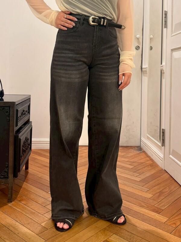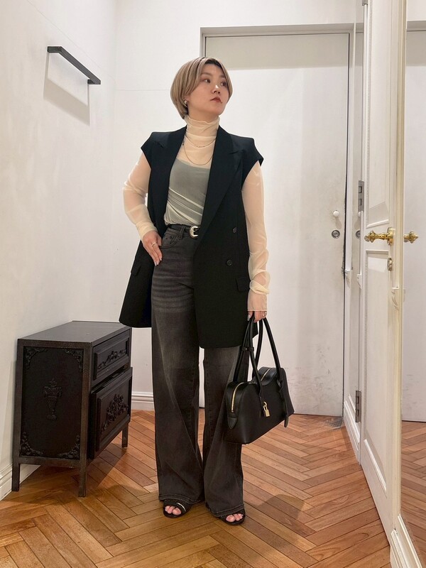 デニムでもカジュアルになりすぎないブラックで、モードなスタイリングに。