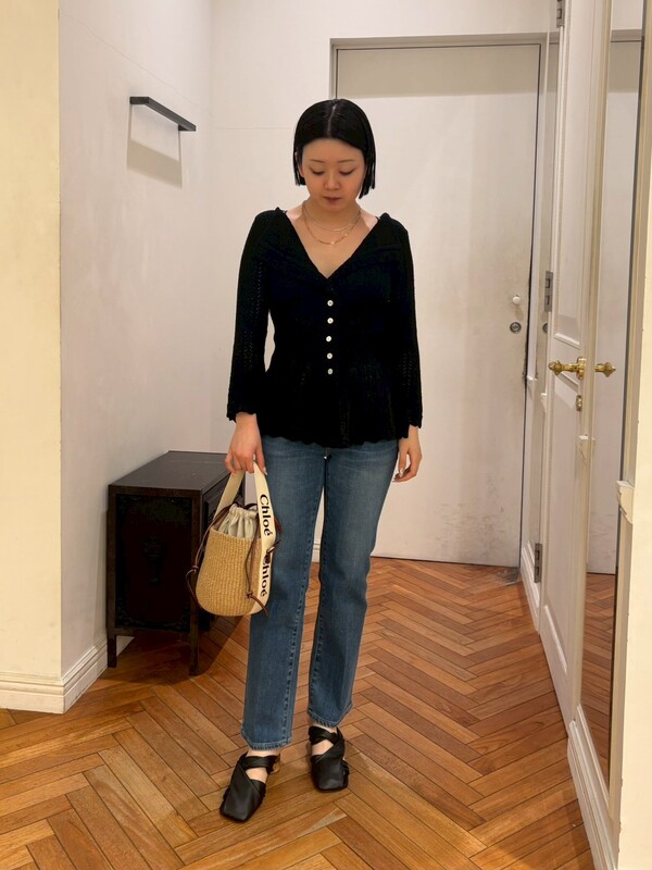 トップスには女性らしいラインのカーディガンをチョイスしてフェミニン×カジュアルに仕上げました。