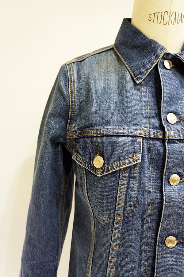 こちらは従来からのやや細身のシルエットが特徴のデニムジャケット。